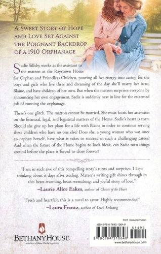 Sadie Sillsby works as the assistant to the matron at the Raystown Home for Orphan and Friendless Children and dreams of the day she'll marry her beau, Blaine. But when the matron surprises everyone by announcing her own engagement, Sadie is suddenly next in line for the job. For a young woman who was once an orphan herself, a shot at such an esteemed position is a wish come true.