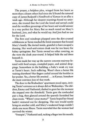 Fed up with the poor quality of life in 1880 New York, Tarsie Raines encourages her friends Joss and Mary Brubacher to move with their two children to Drayton Valley, Kansas, a booming town hailed in the guidebook as the land of opportunity. She offers to help with expenses and to care for Mary and the children as they travel west by wagon train. But when tragedy strikes on the trip across the prairie, Tarsie is thrown into an arrangement with Joss that leaves both of them questioning God and their dreams for the future. As their funds dwindle and nothing goes as planned, will Tarsie and Joss give up and go their separate ways, or will God use their time in Drayton Valley to turn their hearts toward him?