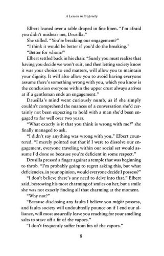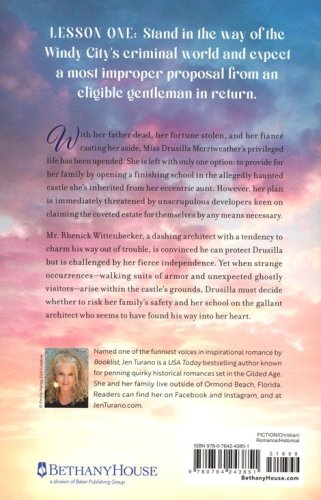 Mr. Rhenick Wittenbecker, a dashing architect with a tendency to charm his way out of trouble, is convinced he can protect Drusilla but is challenged by her fierce independence. Yet when strange occurrences–walking suits of armor and unexpected ghostly visitors–arise within the castle's grounds, Drusilla must decide whether to risk her family's safety and her school on the gallant architect who seems to have found his way into her heart.