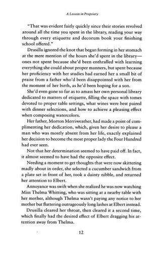 With her father dead, her fortune stolen, and her fiancé casting her aside, Miss Drusilla Merriweather's privileged life has been upended. She is left with only one option: to provide for her family by opening a finishing school in the allegedly haunted castle she's inherited from her eccentric aunt. However, her plan is immediately threatened by unscrupulous developers keen on claiming the coveted estate for themselves by any means necessary.