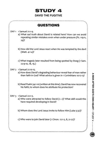 David, the boy who killed Goliath, King of Israel, Psalm writer…but there is more to David than that. He was an adulterer, a King who plotted the death of a faithful soldier so that he could satisfy his own lusts with his subject's wife. Like us all, he had times of doubt and fear, but God used him mightily to provide a lesson to Israel then and to us today. Study David's dramatic life – with more twists and turns than any adventure novel. Geared for Growth study materials encourage: