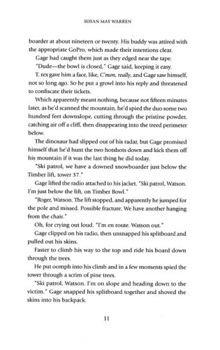When Ella's brother goes missing on one of Glacier National Park's most dangerous peaks, Gage and his team are called in for the rescue. But Gage isn't so sure he wants to help the woman who destroyed his life. More, when she insists on joining the search, he'll have to keep her safe while finding her reckless brother, a recipe for disaster when a snowstorm hits the mountain.