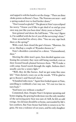 With her signature sweeping style and ability to bring the distant past to vivid life, Laura Frantz beckons readers to join her in a land of Indian ambushes, conflicting loyalties, and a tentative love that meanders like a cool mountain stream.