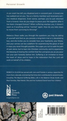 She urges you not to walk the path of pain alone, but to lean into Christian community and to experience the blessing of sharing the comfort that the Lord gives you as you pour out your pain honestly before him. Suffering is an invitation to know the heart of Jesus and to hope in the restoration that the Lord will work on behalf of his children.