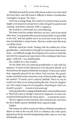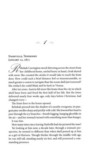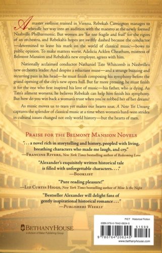 A master violinist trained in Vienna, Rebekah Carrington manages to wheedle her way into an audition with the new maestro at the Nashville Philharmonic. But women are "far too fragile and frail" for the rigors of an orchestra, and Rebekah's hopes are swiftly dashed when the conductor–determined to leave his mark on the world of classical music–bows to public opinion. To make matters worse, Adelicia Cheatham, mistress of Belmont Mansion and Rebekah's new employer, agrees with him.