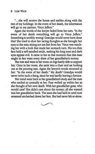 The words of his will rang in her ears: "In the event of my granddaughter's death, everything will go to Vince Jeffers." Jeffers watched her with an evil look that made her shiver.