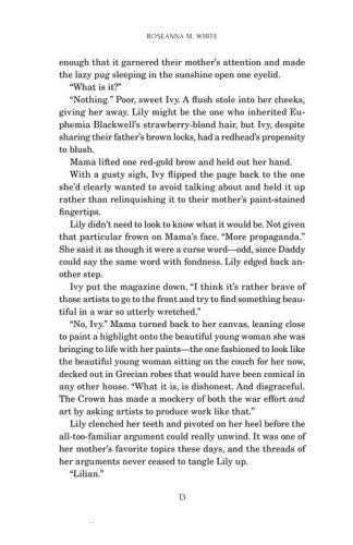 Lily Blackwell sees the world best through the lens of a camera and possesses unsurpassed skill when it comes to retouching and re-creating photographs. With her father's connections in propaganda, she's recruited to the intelligence division, even though her mother would disapprove if she ever found out.