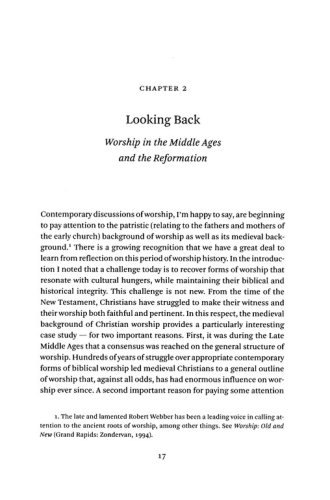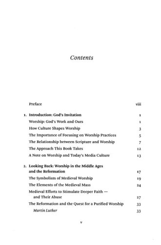"For all the declarations of advance and creativity made for contemporary worship," William Dyrness says, "the controversies that swirl around it are anything but new. And they call us to reflect on the sources of our inclinations in our current circumstances." / A respected scholar of theology and culture, Dyrness here explores where the church has been, theologically and historically speaking, and how that shapes — and needs to shape — where the church will go. He shows how both medieval worship and Reformation spirituality have continued to determine the development of Christian worship in both its Catholic and its Protestant forms. / Through accessible language, clear examples, and thoughtful questions for reflection and discussion, Dyrness makes a very vital conversation about worship available to a wide audience of pastors, worship leaders, and church members.