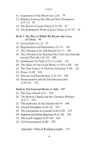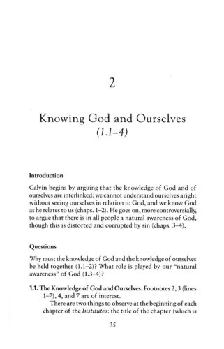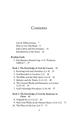 The book includes selected readings and annotations to offer a streamlined introduction to the heart of Calvin's theology. Dividing the Institutes into thirty-two portions, the author has chosen an average of eighteen pages to be read from each to cover the whole range of the Institutes. The notes guide readers through the text, concentrating on the sections chosen for reading and summarizing the material. An introduction and questions at the beginning of each portion direct the reader's attention to important points.