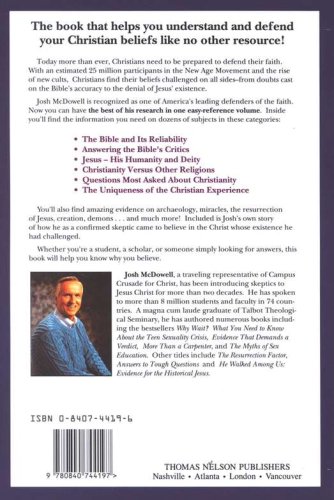 Be prepared "in season and out" with this handy reference book of faith. Timely and biblically based, Josh McDowell's work offers defenses in 60 of the most-challenged areas of faith. All in one easy-to-reference volume, this book will strengthen your commitment and help you stand firm against challenges to the truth.