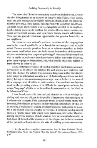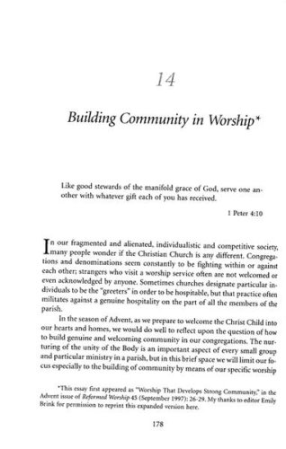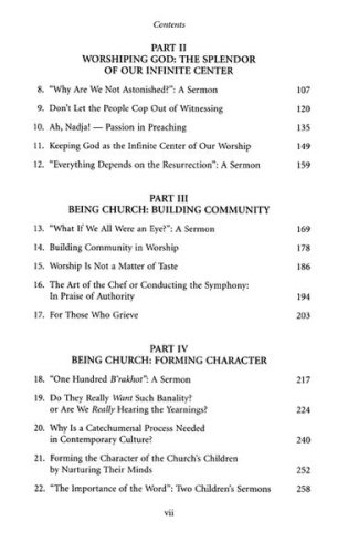 The first major section of the book examines the postmodern, media-saturated, consumerist culture that makes worship difficult yet absolutely essential. The next section focuses on keeping God at the center of worship. Other sections of the book explore issues of taste, forming faith in children, word choices, hospitality in worship, and the challenges of "being church for the world." The book also includes nine Scripture-based sermons and questions for further discussion.