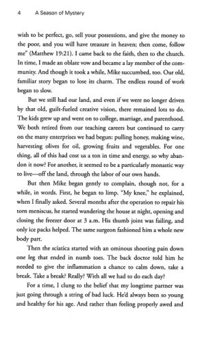 A Season of Mystery is not intended to be a selection of self-improvement secrets; the goal of Huston’s work is to encourage people in the second half of life to become "ordinary mystics" who are no longer bound by the world’s false ideas on aging but instead be freed by God’s grace to embrace the riches that come only with growing older.