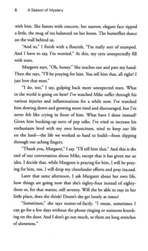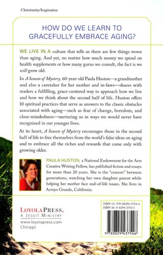 In A Season of Mystery, 60-year-old Paula Huston—a grandmother, and also a caretaker for her own mother and for her in-laws—shares with readers a far more fulfilling way to approach how we live and how we think about the second half of life. Each chapter offers a spiritual practice that is particularly suited to nurturing us in ways we would never have recognized in our younger lives. For example, the practice of "listening" helps us quit superimposing our own take on every situation before we have a chance to hear and see what is truly there; the practice of "delighting" encourages us to notice and be thankful for what is small and seemingly insignificant. Each of the 10 practices serves as an antidote to the classic afflictions of old age, such as close-mindedness, complaining, and fear of change.