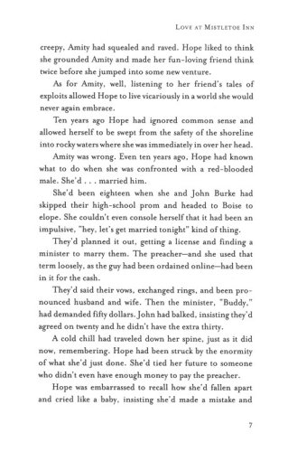 Ten years after what she thought was her almost-wedding, Hope Prentiss discovers that the ceremony counted—and, as fate would have it, the jilted John Burke has just ridden back into town. After spending some time with John and helping plan a Christmas wedding for a mystery couple, Hope begins to wonder if she really wants a divorce . . . or a real wedding of her own.