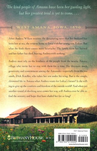 Andrea must rely on the kindness of the people from the nearby Amana village who invite her to stay with them for a time. She discovers much generosity and contentment among the Amanans–especially from the tinsmith, Dirk Knefler, who takes her son under his wing. But is the simple, cloistered life in Amana what Andrea wants for Lukas's future? Is she willing to give up the comforts and freedom of the outside world? And when yet another round of shocking news comes her way, will Andrea ever be able to find the serenity and hope that have eluded her for so long?