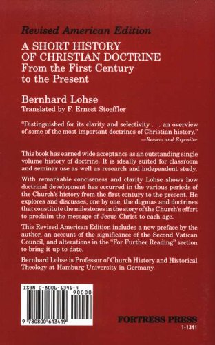 With remarkable conciseness and clarity Lohse, shows how doctrinal development has occurred in the various periods of the Church's history from the first century to the present. He explores and discusses, one by one, the dogmas and doctrines that constitute the milestones in the story of the Church's effort to proclaim the message of Jesus Christ to each age.