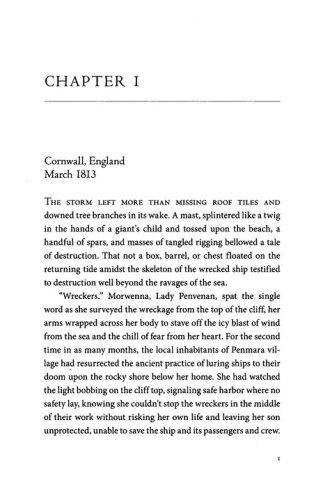 Lady Morwenna Trelawny Penvenan indulged in her fair share of dalliances in her youth, but now that she's the widowed mother to the heir of the Penvenan title, she's desperate to polish her reputation. When she's accused of deliberately luring ships to crash on the rocks to steal the cargo, Morwenna begins an investigation to uncover the real culprits and stumbles across an unconscious man lying in the sea's foam—a man wearing a medallion with the Trelawny crest around his neck.