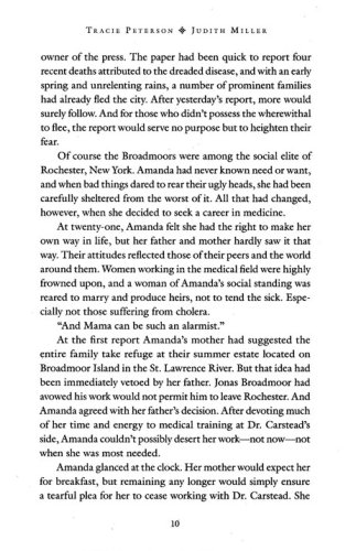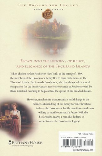 When cholera strikes Rochester, NY, most of the members of the Broadmoor family flee to their castle home in the Thousand Islands. But Amanda Broadmoor resolves to remain in Rochester to help control the spread of the dreaded disease. However, much more than Amanda's health hangs in the balance. Mishandling of the family fortune threatens to leave the Broadmoor family penniless and scorned by society unless Amanda is willing to sacrifice her future. Will she be forced to marry a man she disdains in order to save the Broadmoor legacy?