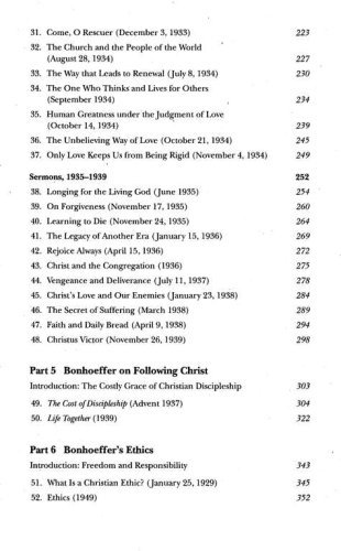 A Testament to Freedom, completely revised and expanded for this edition, includes previously untranslated writings, excerpts from major books, sermons, and selected letters spanning the years of Bonhoeffer's pastoral and theological career. This magnificent volume takes readers on a historical and biographical journey that follows Bonhoeffer through the various stages of his life–as teacher, ecumenist, pastor, preacher, seminary director, prophet in the Nazi era and, finally, as martyr in pursuit of peace and justice.