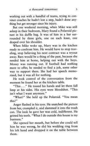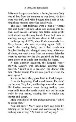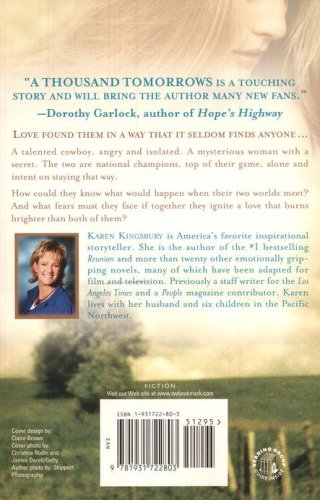 Cody Gunner has no use for real love. Abandoned as a child by the person he needed the most, he swears he will never allow himself to love again. Ali Daniels denies love as well. Carrying a terrible secret, she lives life to the fullest, taking risks and refusing relationships. When Cody and Ali meet, their first instincts are to hide behind their emotional walls, seemingly doomed to repeat the patterns they have established of roost of their lives. But their attraction is too strong, and soon they're doomed in another way, for neither can avoid falling in love, regardless of the consequences. Only after three years–a thousand tomorrows later–do they realize at what cost their relationship comes. In the end, they must decide if love is worth the ultimate price.