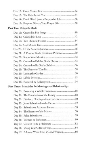Bestselling author Dr. Myles Munroe offers daily practical and biblical advice for women. Based on two of his most popular books, Understanding the Purpose and Power of Women and Understanding the Purpose and Power of Men, this 90-day devotional will help you truly understand your God-given purpose and power as a woman.