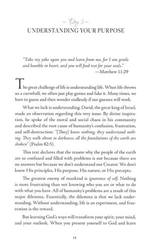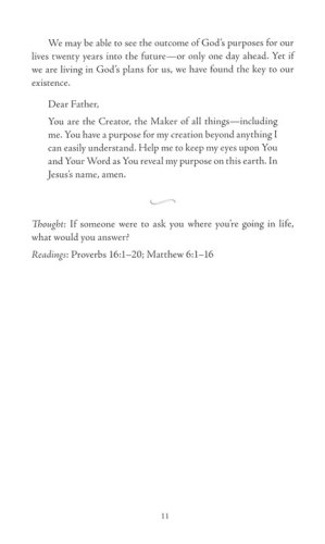 Each day's reading includes teaching and encouragement, a Scripture reading from both the Old and New Testaments, and a thought for the day to draw you closer to God and His purposes for you.