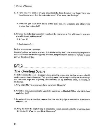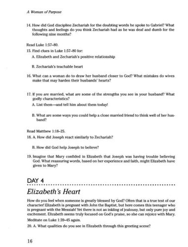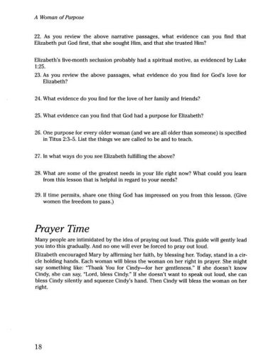 See how God used Elizabeth to prepare Mary for Jesus' birth. Witness mary of Bethany as she "hung on His every word." Smile and understand as you read the account of Easter morning when the men said the "women's words seem like nonsense." Click here to obtain free Leader's Helps for A Woman of Purpose. This complimentary resource will help you guide your students to discover how Jesus exhorted women and validated their purpose in His Kingdom.