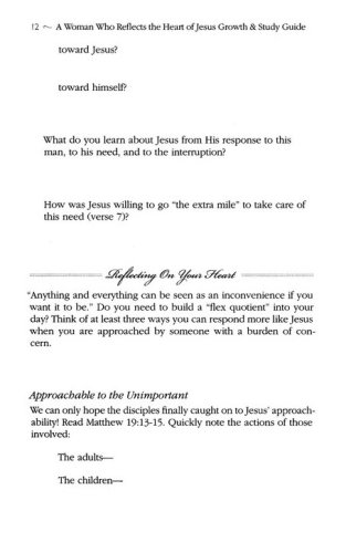 In A Woman Who Reflects the Heart of Jesus Growth & Study Guide, fascinating, up-close study lessons of Jesus in action will help women discover the kind of character that enables them to reflect the heart of Jesus in their lives.