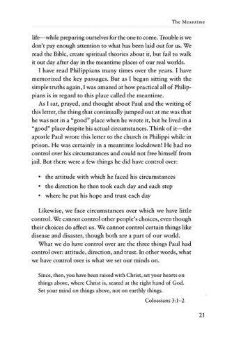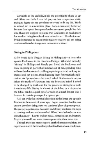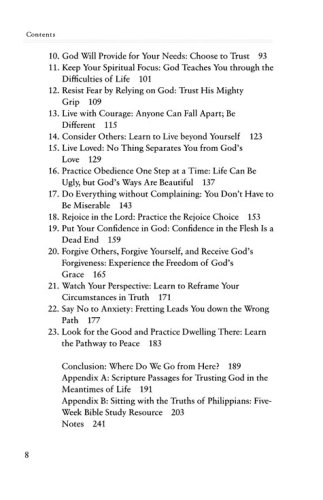 With empathy and wit, Debbie Alsdorf uses the book of Philippians to encourage women to lean on God, to live one day at a time, to rejoice and not to worry, and to give thanks to God in all circumstances of life. The confidence and peace readers will gain from the perspective presented in this loving book will help them live fully in the moment, in every season of life.