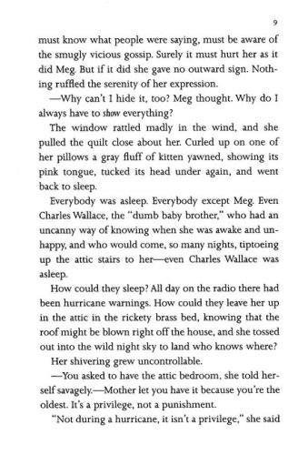 It was a dark and stormy night; Meg Murry, her small brother Charles Wallace, and her mother had come down to the kitchen for a midnight snack when they were upset by the arrival of a most disturbing stranger.