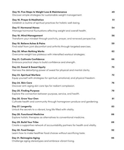 Shemane shares her journey from deadly sickness and depression to vibrant health and provides a path others can follow. This 40-day transformation will help you live vibrantly, age gracefully, and energize your faith.