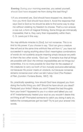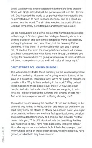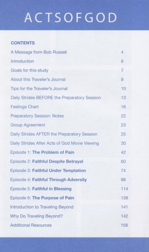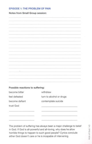 Designed to be used in conjunction with the 6-session small group DVD study, Acts of God, this traveler's journal guides you through a journey of grappling with your own suffering, and your reactions to others' suffering, as well as wrestling with the intellectual problem of pain.