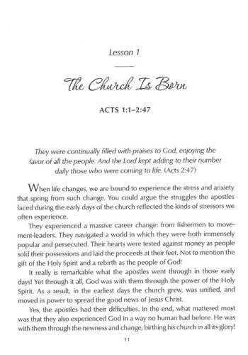 The book of Acts picks up where Jesus’ story left off in the gospel of Luke by exploring the continuing presence of Christ on earth: the church. This inspired account of church history will awaken your soul with transforming power and give you courage to be a witness for Christ wherever he sends you!
