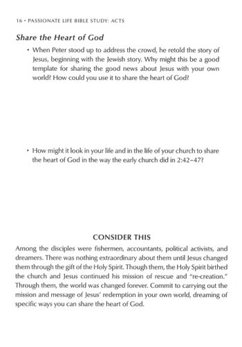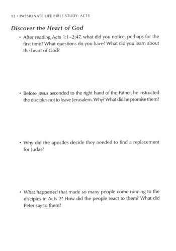 This Bible study is designed to help you explore and discover God’s heart for the world through Luke’s biography of history’s most unlikely movement, the church of Jesus Christ. Each uniquely-crafted lesson opens with an introduction and key verse to reveal important themes. Four sections guide readers through Acts in a way that will help you discover, explore, experience, and share the heart of God more deeply. Dive into this book heart first, to discover and experience the same fire that fueled the passion of early Christians two thousand years ago!
