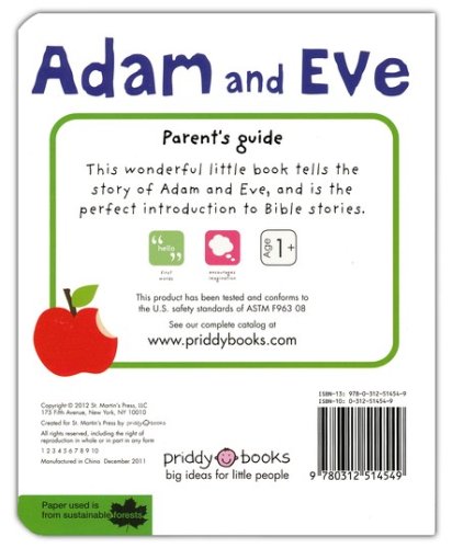 With simple language, and bright clear pictures, Baby's First Bible series provides an ideal first introduction to the Bible, its stories and characters for infants and toddlers. This engaging retelling of Adam and Eve is written in accessible, simple narrative, while the colorful illustrations and sparkly foil on the pages capture children's attention and hold their interest.