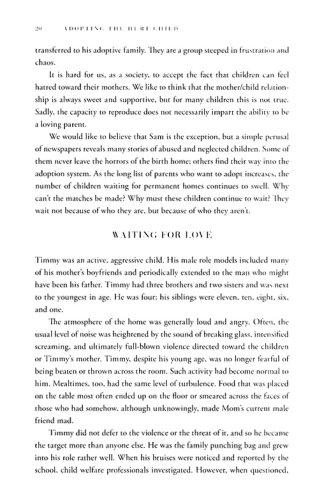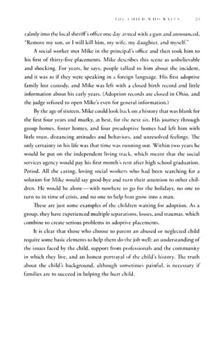 Without avoiding the grim statistics, this book reveals the real hope that hurting children can be healed through adoptive and foster parents, social workers, and others who care. Includes information on foreign adoptions.