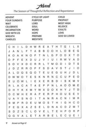 Encourage kids to learn while they puzzle with the Advent, Christmas, Epiphany, and Beyond Word Search. This itty-bitty activity book features a collection of word search puzzles that help children learn the Christmas story of Baby Jesus being born in a manger.