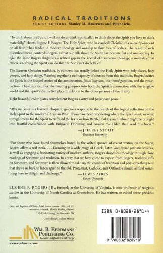 To think about the Spirit it will not do to think 'spiritually': to think about the Spirit you have to think materially," claims Eugene F. Rogers. The Holy Spirit, who in classical Christian discourse "pours out on all flesh," has tended in modern theology and worship to float free of bodies. The result of such disembodiment, contends Rogers, is that our talk about the Spirit has become flat and uninspiring. In After the Spirit Rogers diagnoses a related gap in the revival of trinitarian theology, a mentality that "there's nothing the Spirit can do that the Son can't do better."