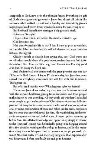Wright dispels the common misconception that Christian living is nothing more than a checklist of dos and don'ts. Nor is it a prescription to "follow your heart" wherever it may lead. Instead, After You Believe reveals the Bible's call for a revolution—a transformation of character that takes us beyond our earthly pursuit of money, sex, and power into a virtuous state of living that allows us to reflect God and live more worshipful, fulfilling lives.