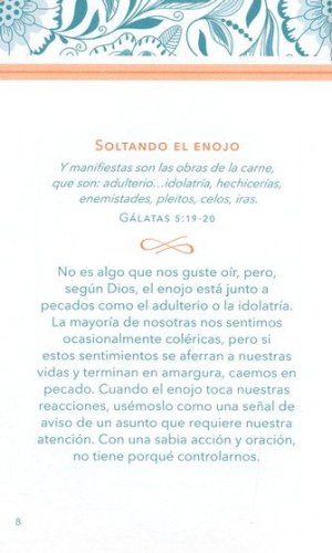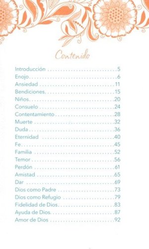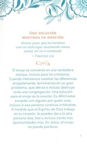 La angustia. La duda. La fe. La amistad. El éxito. El trabajo. Solo son unos cuantos de los temas oportunos incluidos en este refrescante volumen diseñado para aliviar tu día e iluminar tu espíritu. Cada lectura hablará a tu corazón conforme experimentes la inspiración que solo se puede encontrar mediante una relación íntima con el Maestro Creador. Los más de 200 devocionales inspiradores son sucintos y están llenos de poder, perfectos incluso para tu día más ocupado. Todo esto, bajo una hermosa presentación, del que querrás comprar dos ejemplares, uno para ti y otro para bendecir la vida de una amiga.