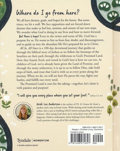 All In, All Yours is a 100-day devotional that shows us how God is our rescuer by guiding us through the biblical story of Joshua, as we follow the Israelites on their path from pain to promise.