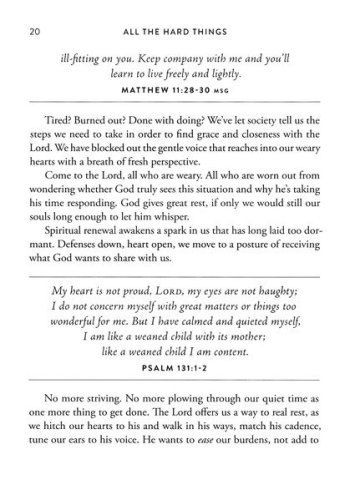 There are no instructions for times like these. No platitudes or forced positivity will do. Instead, All the Hard Things is a devotional offering 50 days of gentle affirmations, scriptural insights, and uplifting reminders of God’s intimate goodness for anyone experiencing a season of difficulty.
