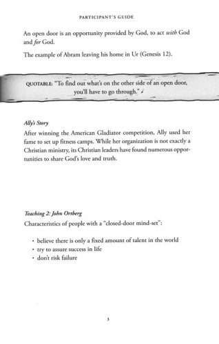 Very rarely in the Bible does God command someone to “stay.” He opens a door, and then he invites us to walk through it—into the unknown. And how we choose to respond will ultimately determine the lives we will lead and the people we will become. In fact, to fail to embrace the open door is to miss the work God has made for us to do.
