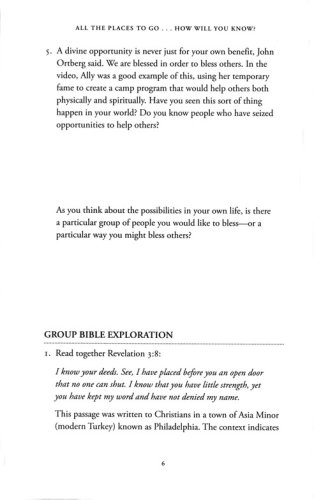 In All the Places to Go . . . How Will You Know?, bestselling author John Ortberg opens our eyes to the countless open doors God places before us every day, teaches us how to recognize them, and gives us the encouragement to step out in faith and embrace all of the extraordinary opportunities that await.