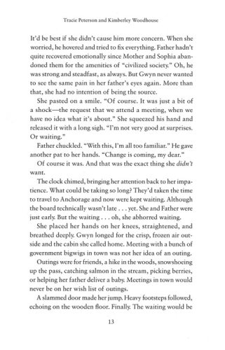 Gwyn Hillerman loves being a nurse at her father's clinic on the beautiful Alaskan frontier. But family life has been rough ever since her mother left them, disdaining the uncivilized country and taking Gwyn's younger sister with her.