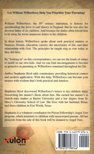 Let William Wilberforce Help You Prioritize Your Parenting William Wilberforce, the 19th century statesman, is famous for spearheading the drive to end slavery in England. But he was also the devoted father of six children. And because his duties often forced him to be away, he wrote numerous letters to his children. In these letters, Wilberforce spoke about such practical matters as finances, friends, education, careers, the uncertainty of life, and their relationship with God. The principles he taught ring as true today as they did then. By "looking in" on this correspondence, we can see the kinds of values to instill in our own kids. And we can find encouragement to become as proactive in parenting as Wilberforce remained throughout his life. Author Stephanie Byrd adds commentary providing historical context and modern application. With this help, Wilberforce can become your mentor with wisdom that's both practical and timeless. Stephanie Byrd discovered Wilberforce's letters to his children while researching her master's thesis about him. She earned her master's in church-state studies at Baylor University and a law degree from St. Mary's University School of Law. She lives with her husband, Brian, and three children in Fort Worth, Texas. Stephanie is a volunteer coordinator for Prison Fellowship's Angel Tree program, which ministers to children with incarcerated parents. All her proceeds from the sale of this book will be donated to Angel Tree.