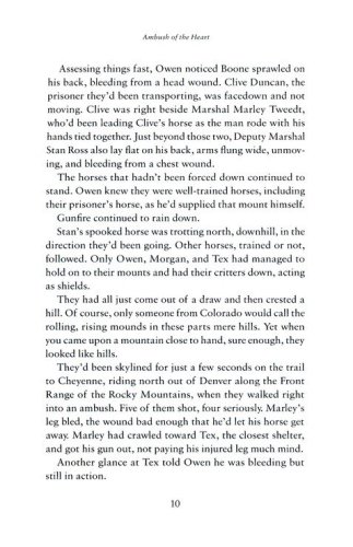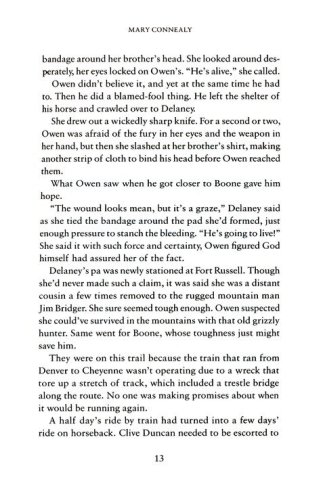 After the attack leaves her brother Boone seriously injured, Delaney helps Owen, nursing Boone and a wounded Marshal back to health while danger looms ever closer. Despite the threat at their heels, romance sparks between Owen and Delaney as they fight for survival on their perilous trek to the fort. Can they overcome the obstacles and find a future together?