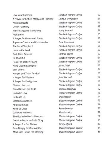 Each prayer embodies the enduring values of courage, gratitude, and hope that have fortified this nation since its founding. Enriched with captivating historical context and stunning artwork, this beautifully curated book invites you to reflect on our country’s spiritual roots, face today’s challenges with steadfast faith, and come together in prayer for a brighter, stronger future.