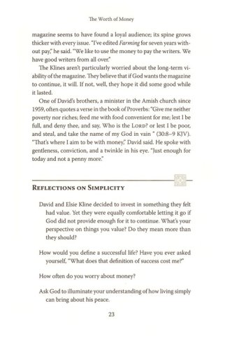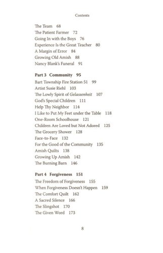 Organized around five central themes in Amish life, each section will include real-life stories, callouts of Amish proverbs, and interesting facts about Amish communities. Each section will also contain questions for reflection and action–things you can do in your own life that "make for peace."
