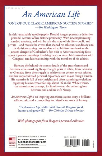 Here he reveals what went on behind his decision to enter politics and run for the governorship of California, the speech nominating Barry Goldwater that first made Reagan a national political figure, his race for the presidency, his relations with the members of his own cabinet, and his frustrations with Congress.